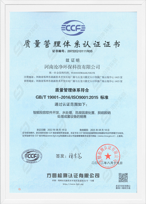 滄凈環(huán)保,是一家集科研、設計,工程施工、調(diào)試于一體的智能粉體投加系統(tǒng)-國家級高新技術企業(yè)【編號:GR202341000885】,旗下產(chǎn)品涵蓋水處理、危廢固廢處置,脫硫脫硝處理等領域,且通過ISO 9001:2015質(zhì)量管理體系認證。